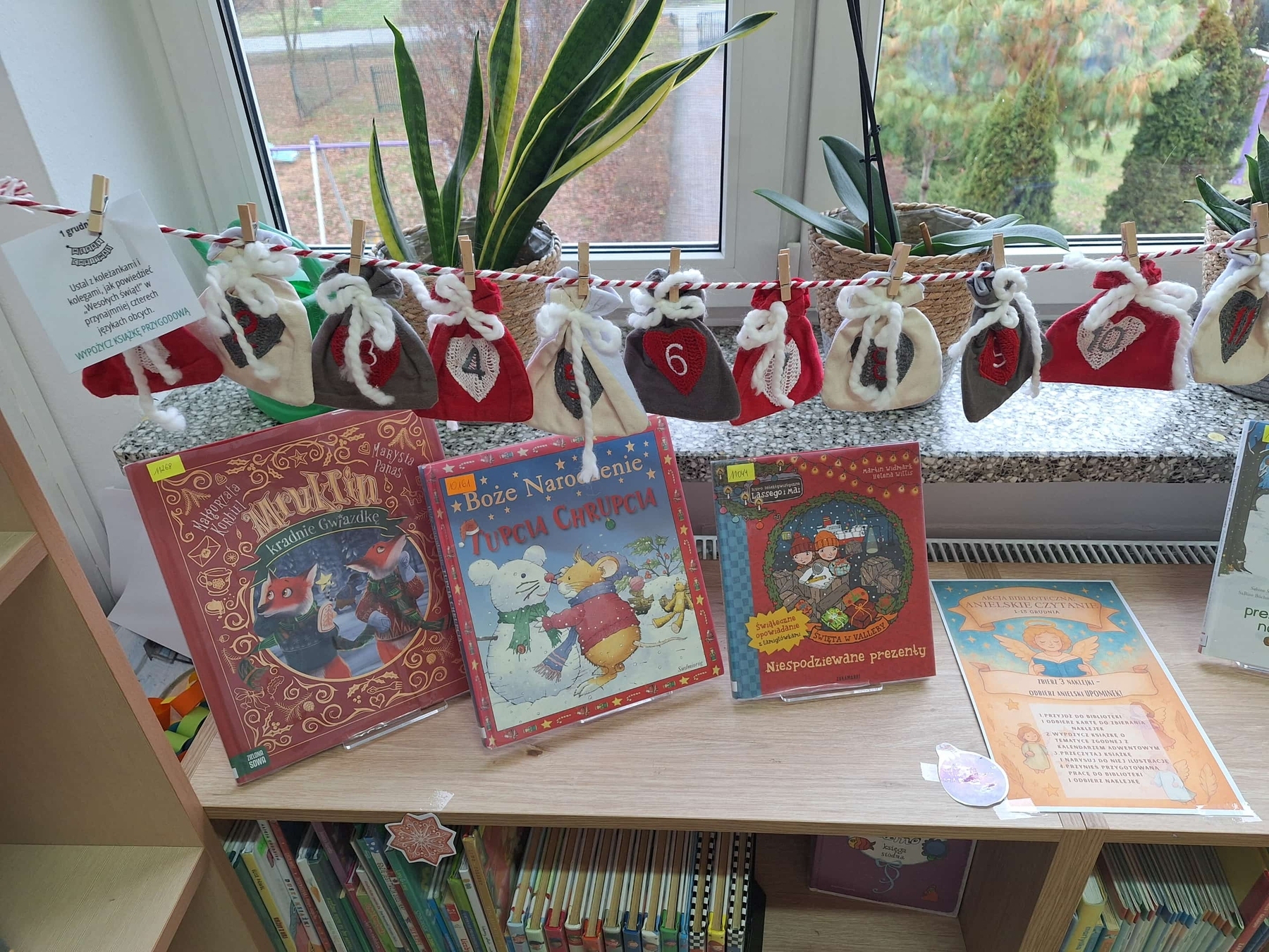 📸 W październiku trwała również akcja „Książkowa Polecajka” – uczniowie robili sobie zdjęcia z ulubionymi książkami i pisali krótkie uzasadnienie swojego wyboru. Efekty można było podziwiać na wystawie na parterze szkoły przez cały miesiąc.