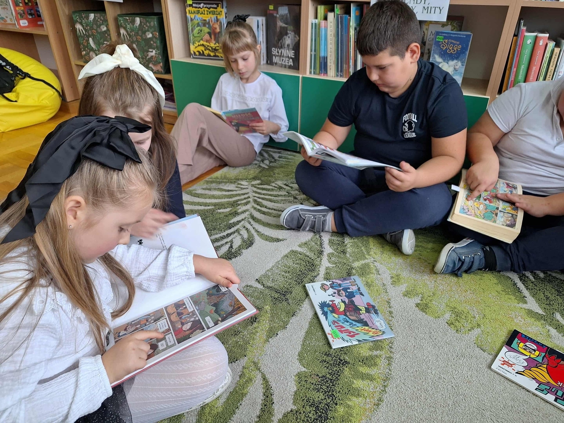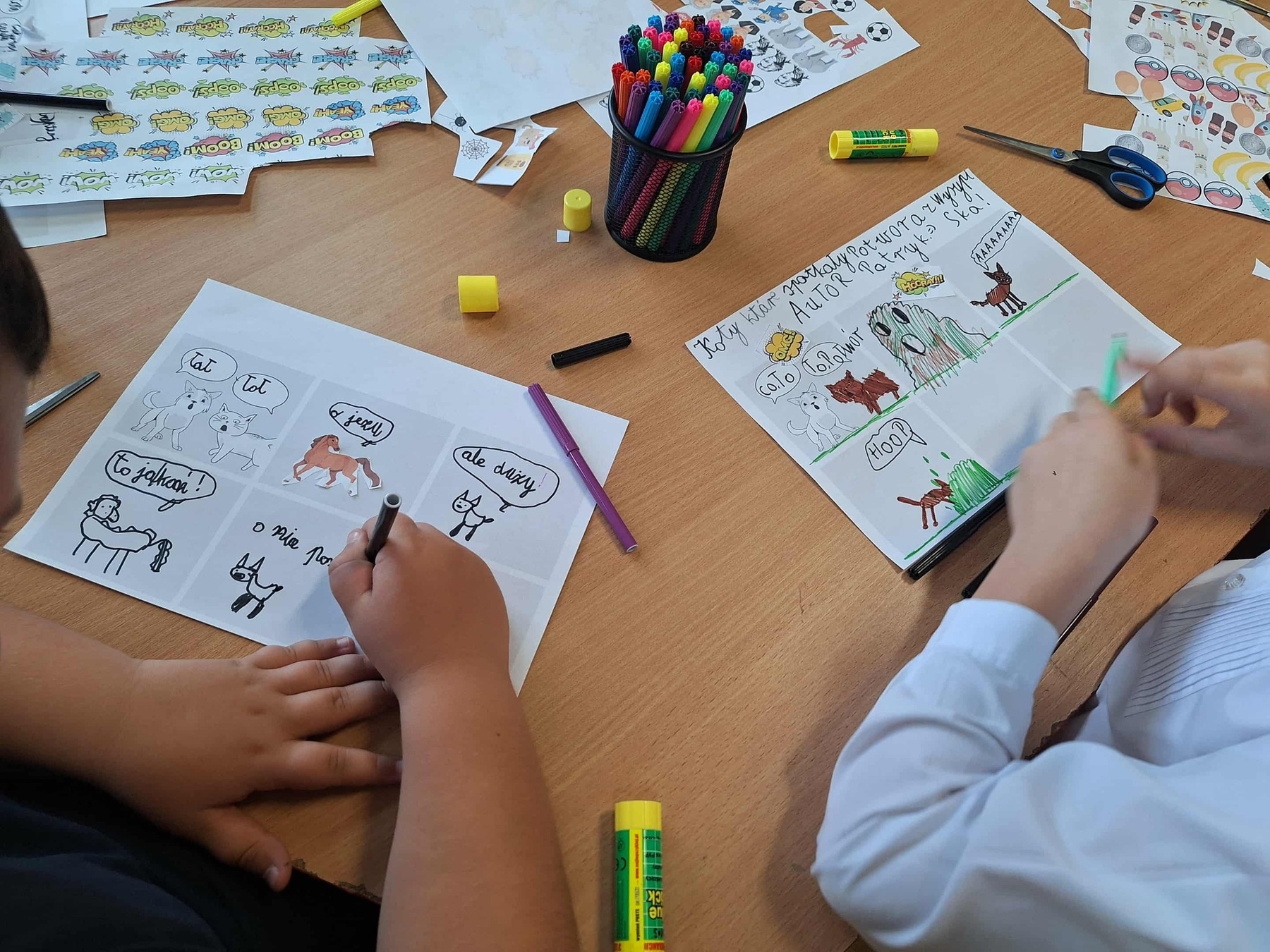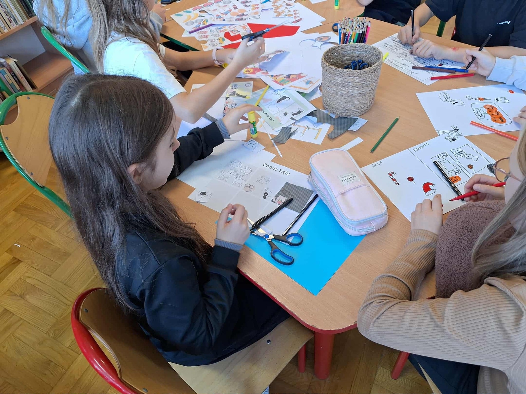 🎨 Z okazji Miesiąca Bibliotek zorganizowaliśmy także warsztaty tworzenia komiksów, w których wzięło udział wiele klas. Uczniowie mieli okazję wykazać się kreatywnością, tworząc własne historie i ilustracje.