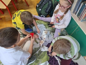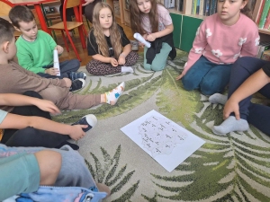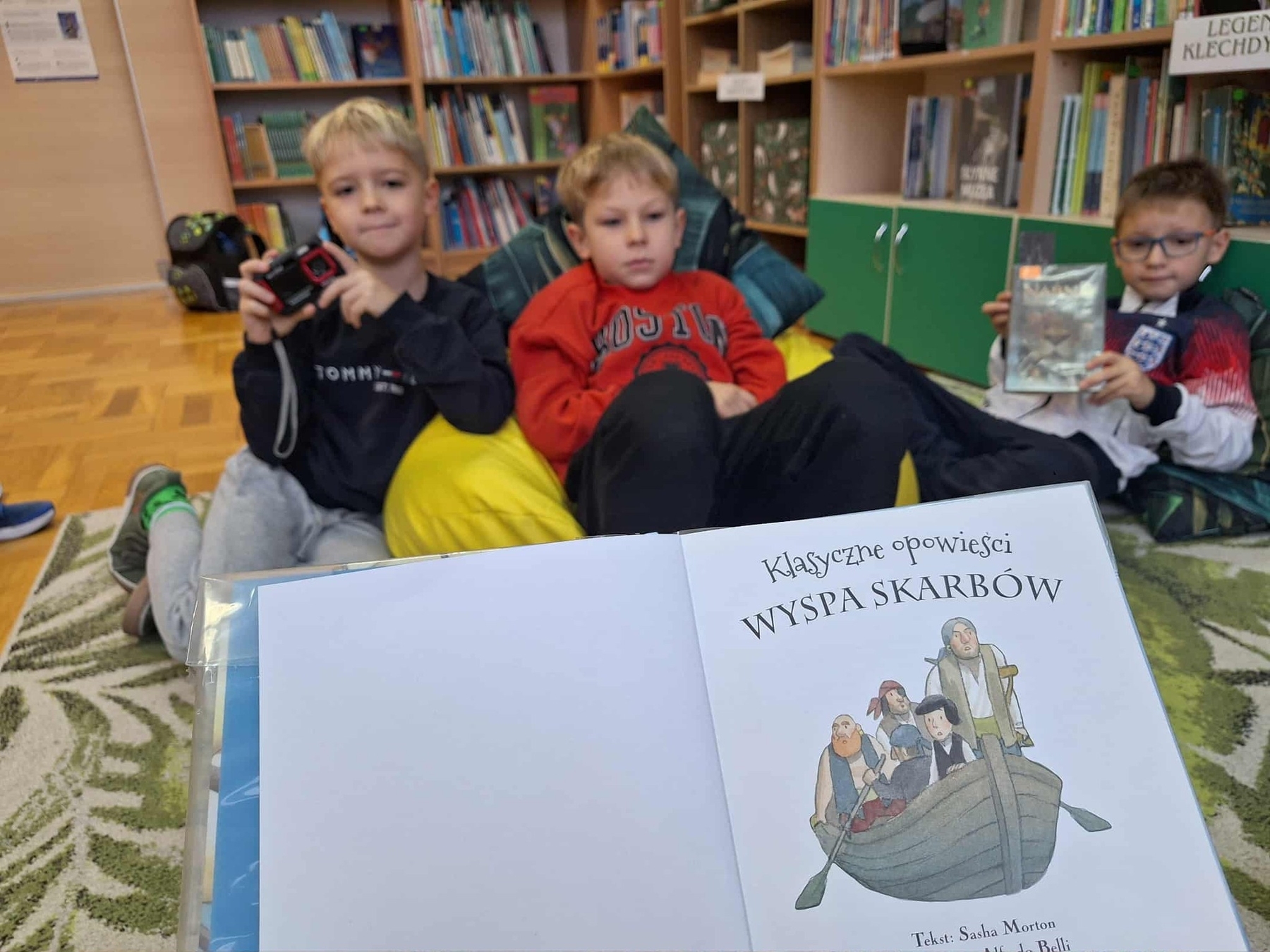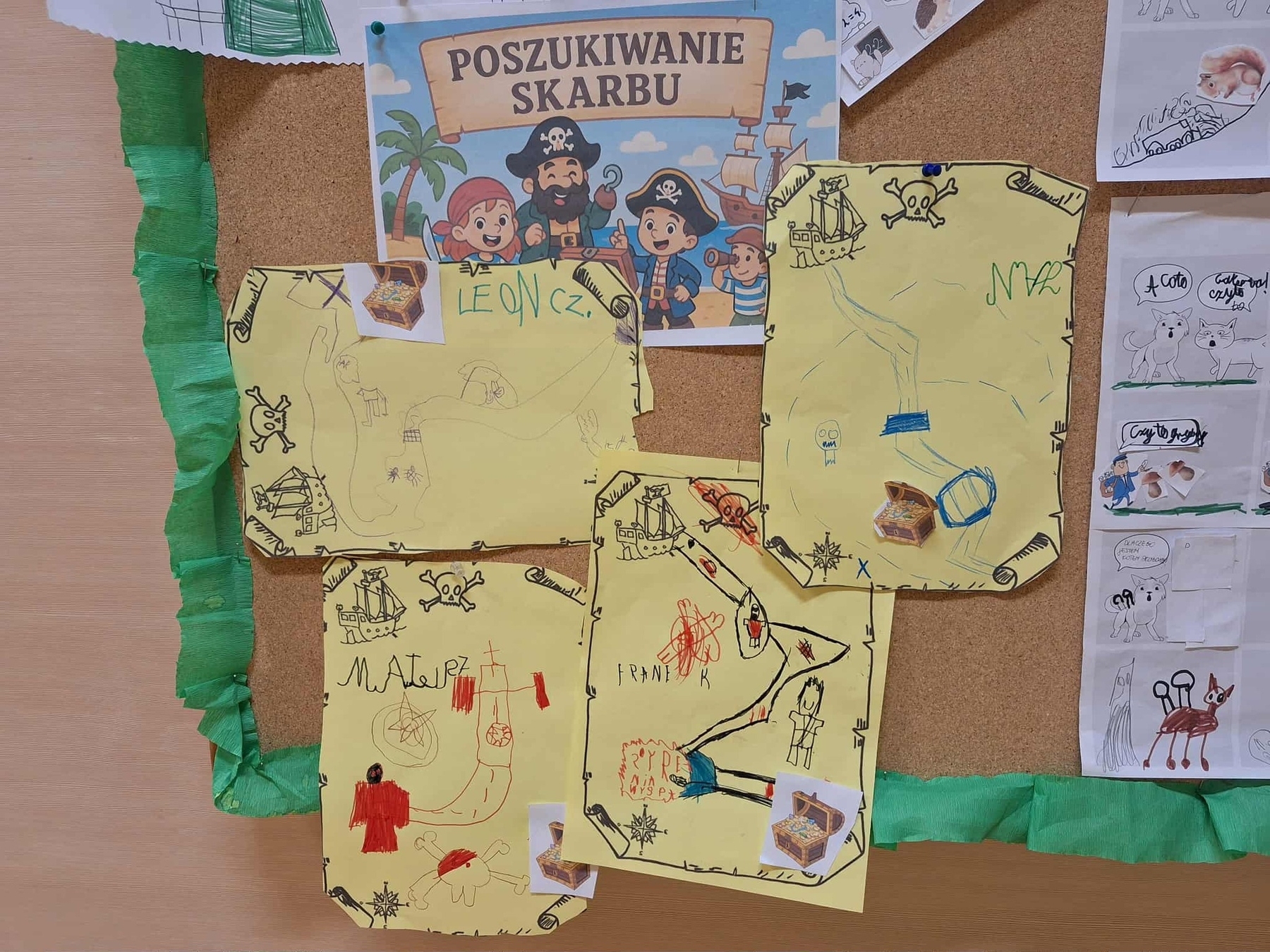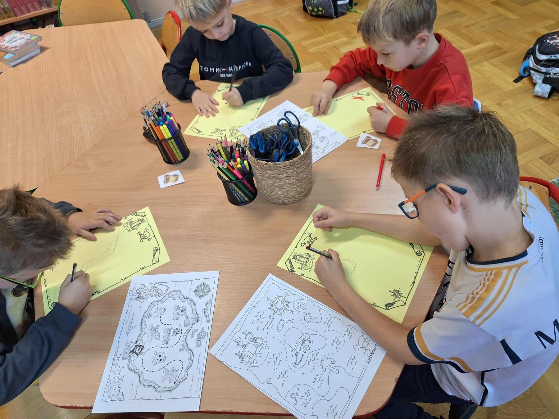👧 Klasy pierwsze poznały przygody sympatycznego Mafina Pigduma, wyruszyły w podróż z Jimem Hawkinsem w poszukiwaniu pirackiego skarbu, a następnie samodzielnie tworzyły własne mapy skarbów! Uczniowie poznali również jedną z bohaterek książki „Niesamowite przygody dziesięciu skarpetek”, odkrywając, że nawet skarpetka może mieć niezwykłą historię.