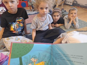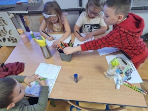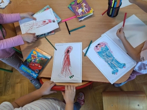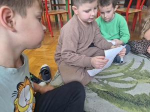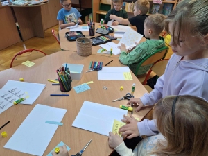 Nie zabrakło również zabaw paluszkowych oraz twórczych aktywności plastycznych, które sprawiły dzieciom mnóstwo radości.