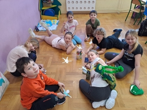 W tym roku szkolnym kolejna grupa wzięła udział w międzynarodowym programie promocji zdrowia psychicznego „Przyjaciele Zippiego". Kolejna klasa miała okazję poznać sympatycznego, pluszowego patyczaka, który od 2022 roku rozgościł się w naszej szkole. Zippi uczy różnych sposobów radzenia sobie z trudnościami i wykorzystywania nabytych umiejętności w codziennym życiu oraz doskonali relacje dzieci z innymi ludźmi. Program przewiduje 24 spotkania realizowane w oparciu o starannie opracowane materiały. Z racji tego, że klasa II była bardzo zaangażowana w zajęcia, nasze spotkania niejednokrotnie były przedłużane lub temat rozkładaliśmy na dwie jednostki lekcyjne. Pokazuje to, jak wielką potrzebę mają dzieci by rozmawiać o swoich uczuciach, problemach, trudnościach i sukcesach w sferze emocjonalno-społecznej. Program „Przyjaciele Zippiego” uczy dzieci, jak radzić sobie ze zmianami i wyzwaniami, jak rozwiązywać konflikty i dobrze funkcjonować w grupie. W trakcie zajęć pojawiało się wiele okazji do zabawy, ćwiczeń i rozmów o sprawach ważnych na tym etapie życia, o przyjaźni, o zmianach jakie zachodzą w nas i wokół nas, o sukcesach i porażkach oraz sposobach radzenia sobie z trudnościami. Dzieci dowiedziały się, że potrafią znaleźć rozwiązanie, że warto i można prosić o pomoc, a także uczyły się okazywać pomoc innym.
